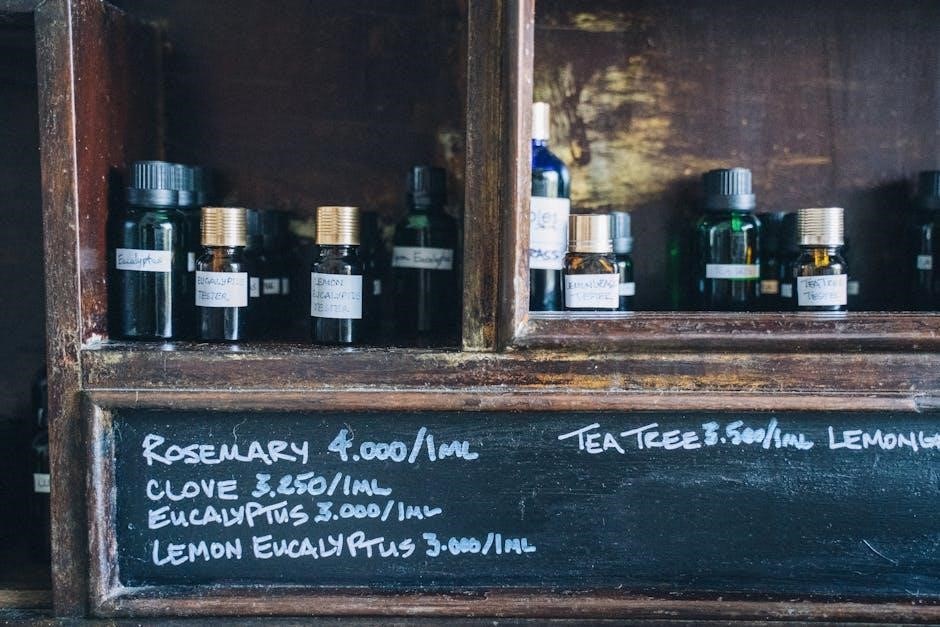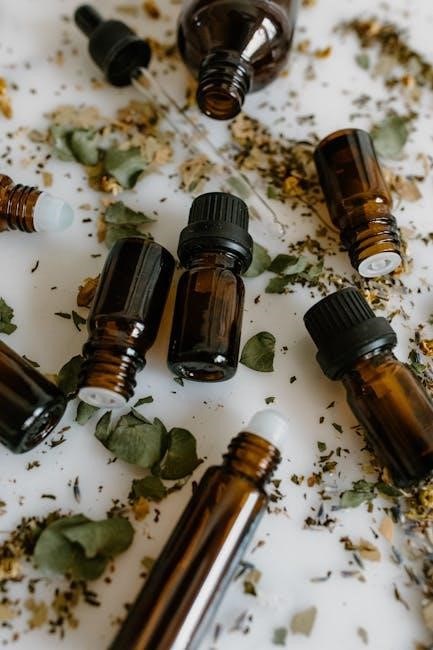 Carrier oils – like jojoba, sweet almond, or grapeseed oil – are vital for dispersing essential oils and preventing irritation. The PDF will include a handy dilution chart, simplifying calculations and promoting responsible aromatherapy practices. Remember, more isn’t better; adhere to recommended ratios for optimal benefits and safety.